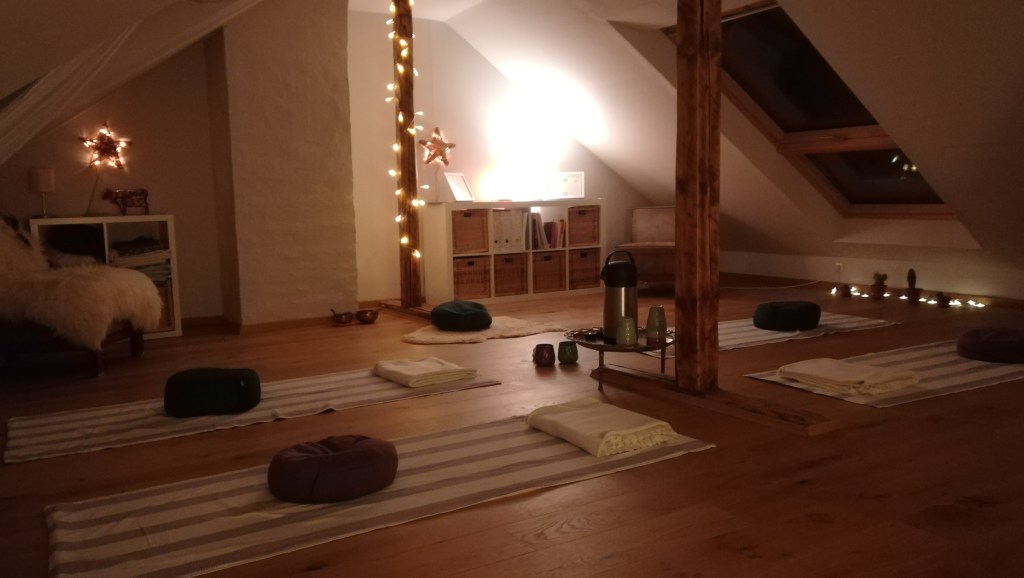 Wir üben exklusiv in kleinen Gruppen mit maximal 7 Teilnehmer*innen. Du kannst jederzeit einsteigen, egal ob Du bereits Erfahrungen sammeln konntest oder Neueinsteiger*in bist. Matten, Decken und Sitzkissen sind vorhanden und dürfen gerne verwendet werden.